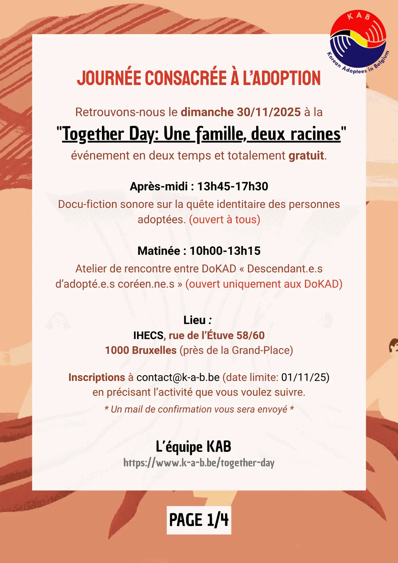 Retrouvons-nous le dimanche 30/11/2025 à la "Together Day: une famille, deux racines", événement en deux temps et totalement gratuit